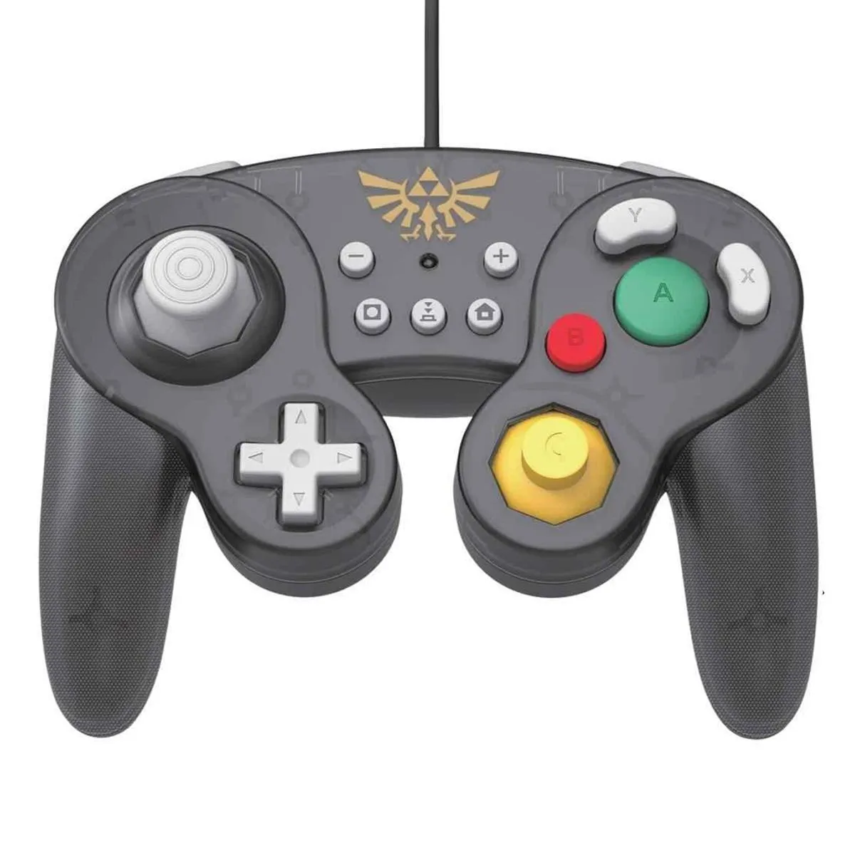 Producto 100% original, el Mando GameCube Zelda de HORI para Nintendo Switch combina el estilo clásico de la era dorada con funciones modernas para una experiencia de juego precisa y nostálgica. Diseñado especialmente para fanáticos de The Legend of Zelda, este control con cable de 3 metros incluye botones L/R y ZL/ZR de acción rápida, configuración de turbo y sticks anti-snapback que mejoran la precisión y el control en tÃtulos como Super Smash Bros. Ultimate.
